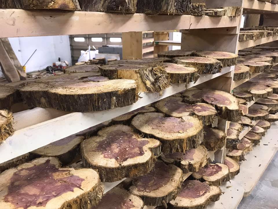 Kiln- and air-dried live edge slabs, logs, turning blanks, stumps, burl, drop-cuts, root balls, &